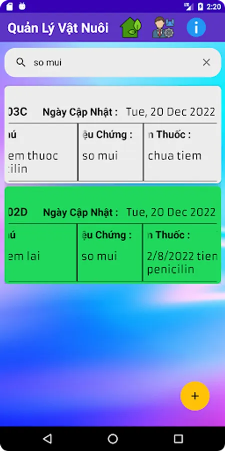 * Search, filter location information, rabbit code, disease of rabbits on the farm quickly.