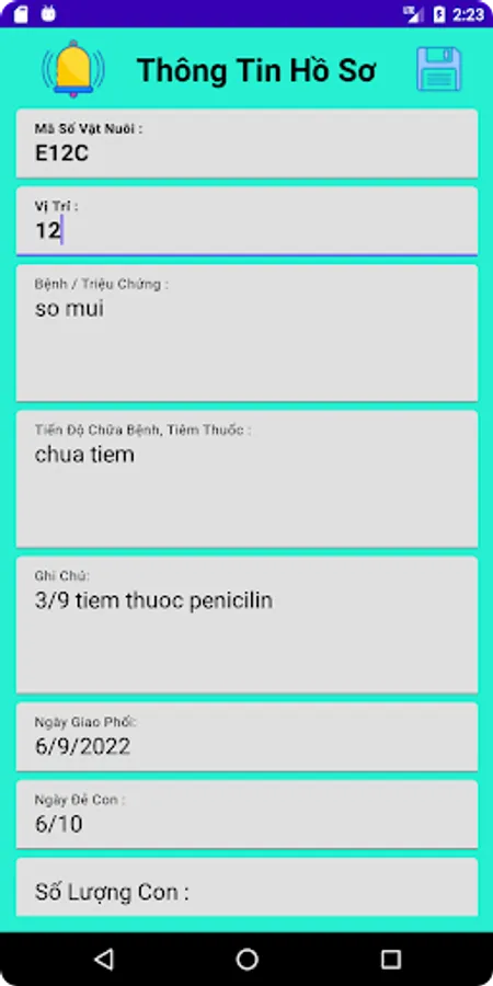 * Note, control, update location information, rabbit code, health status, treatment progress, breed, age, mating date.... easily and conveniently anytime, anywhere.