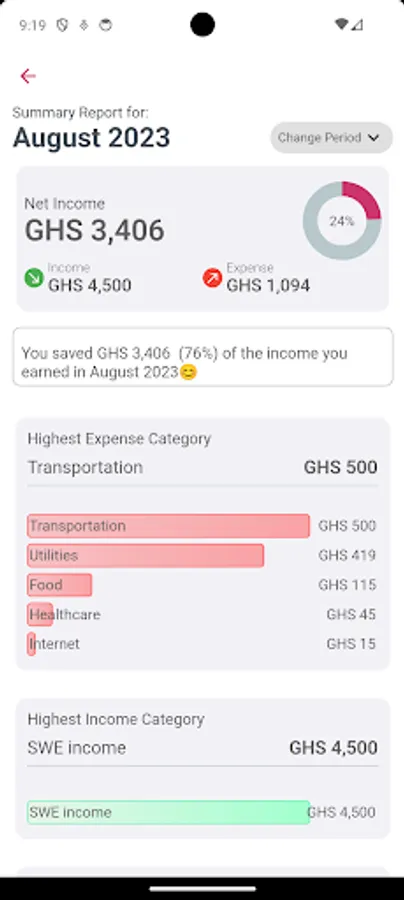 Get access to relevant information like graphs on your expense categories, total spending within the current week, recent weeks and for each month in the year. All you need to do is to input your expenses and let the app show you the needed information.