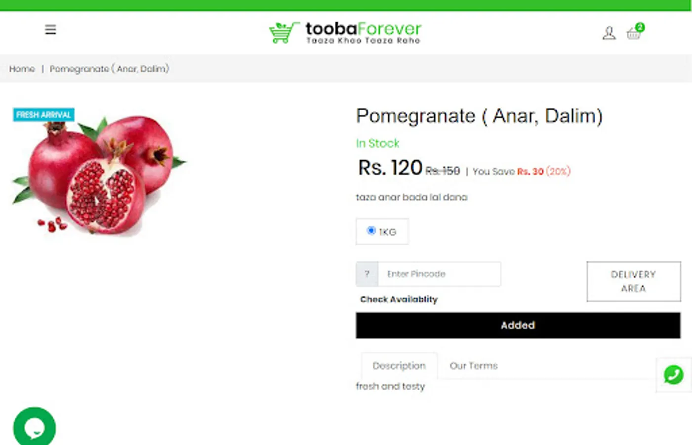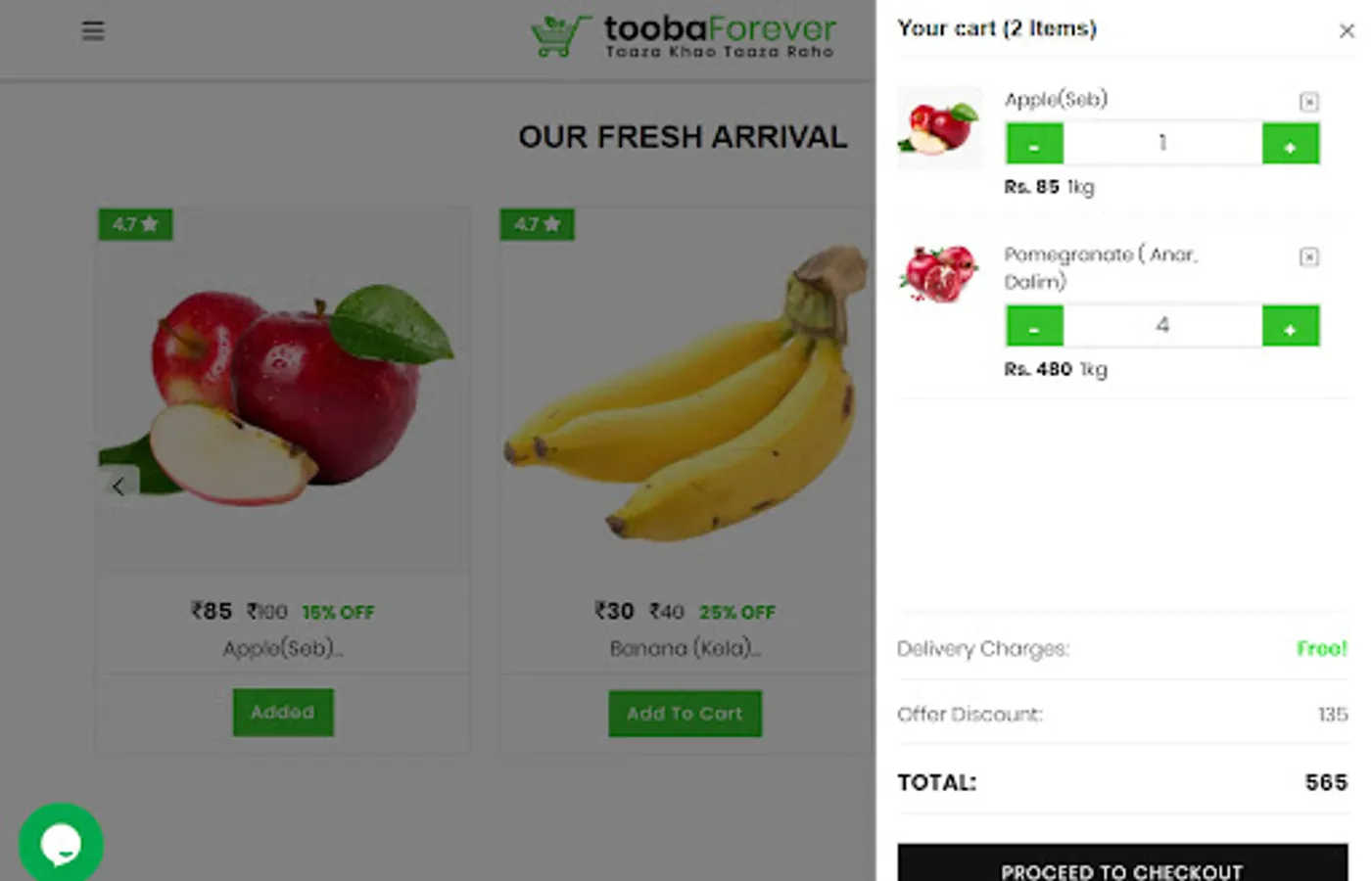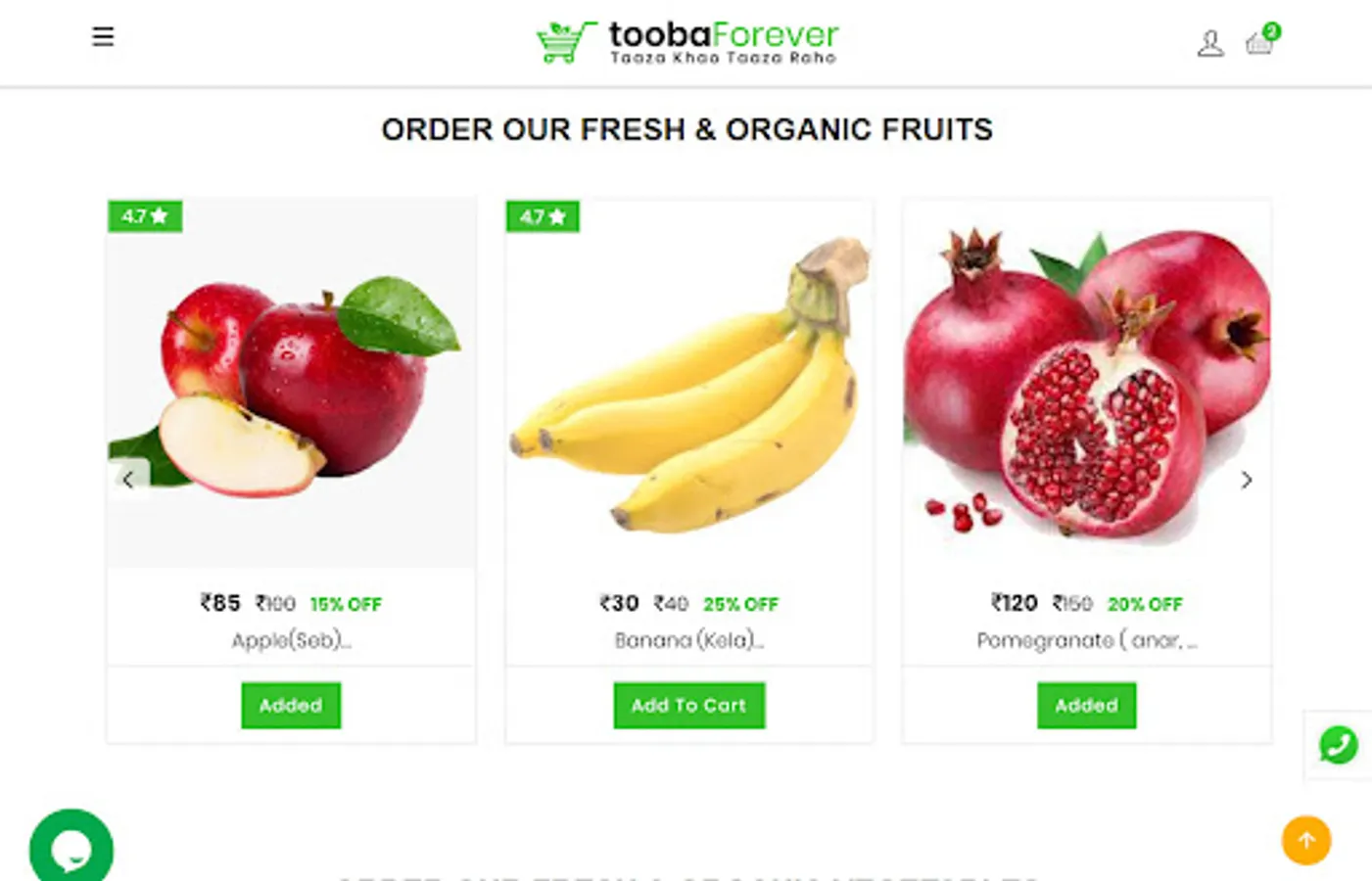 Toobaforever is an online food delivery startup, like (Fruits, Vegetables, grocery items, eggs, fish, meat etc.) company, our goal is to make our customers happy and deliver them fresh and authentic items, so that they can have healthy food items. Our Online App is so user friendly that anyone can do shopping easily. Our customers can do online payment and book products for cash on delivery. Toobaforever has its own amazing delivery team so we are very fast to deliver the products. Our customers can make the orders by our website (toobaforever.com) and our App as well. We are always happy to serve our customers.