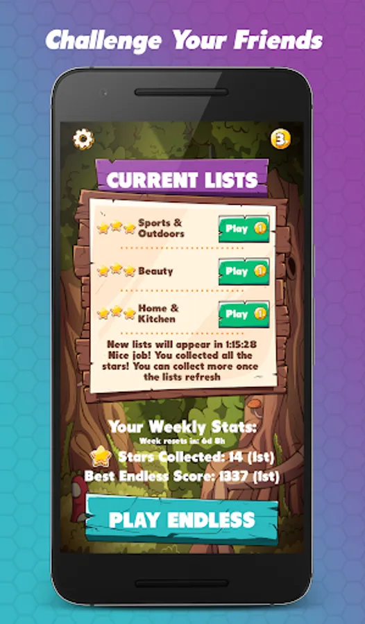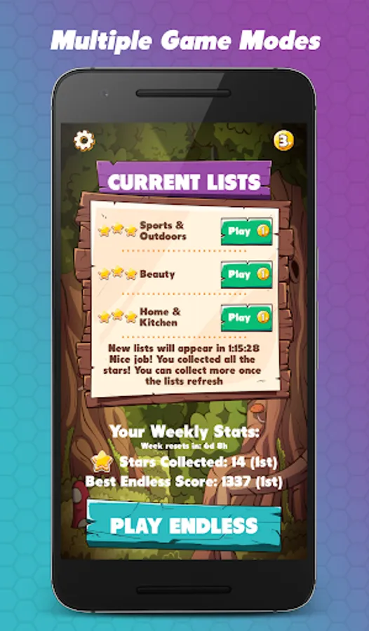 List mode! Guess the price of products that belong to one of our many curated lists! The lists will refresh regularly so make sure to achieve 3 stars on them while they are available. Achieve as many stars as you can during the week to top the leaderboards!