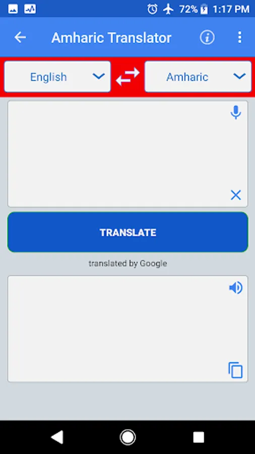 Amharic Translator App that translates between 103 languages. Use this app for your daily use. Fast and easy to use.