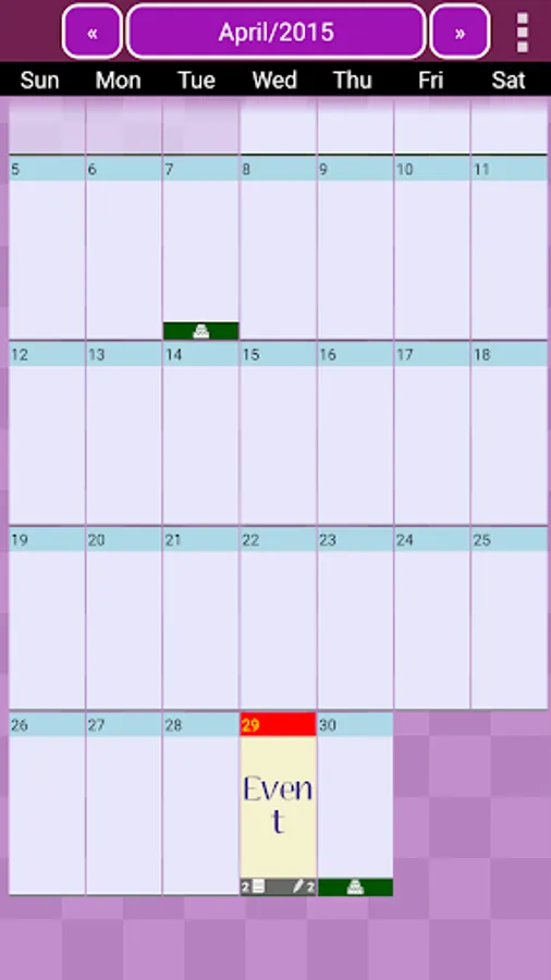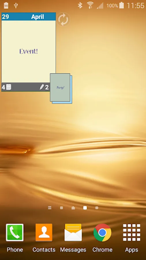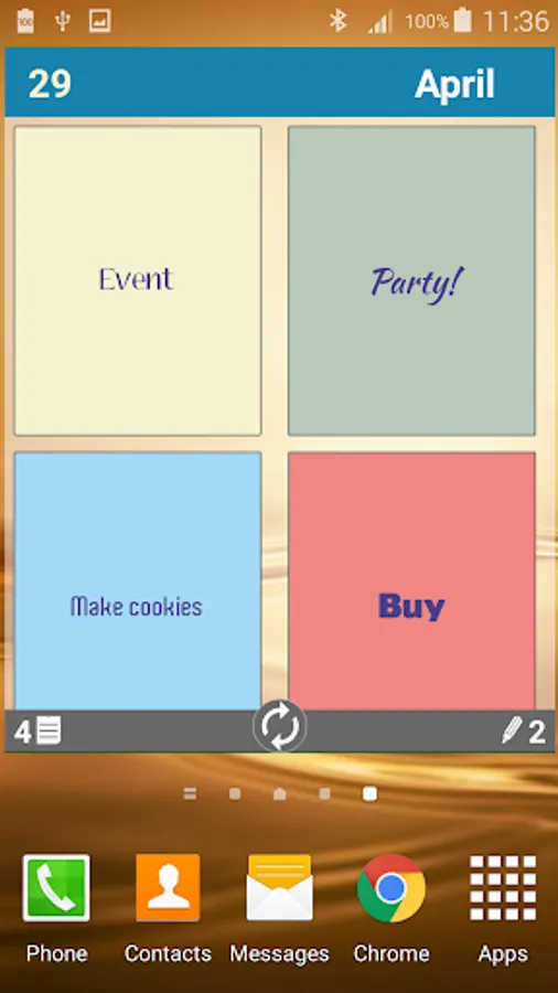 This schedule is intended to have all possible information on the same screen as well as a postit, the number of tasks, alarms programmed or Android 3 onwards events contacts, for example if a contact that day is your birthday you will see an icon of a cake, if it's a few hearts anniversary see if any other event you see an icon of a megaphone.
