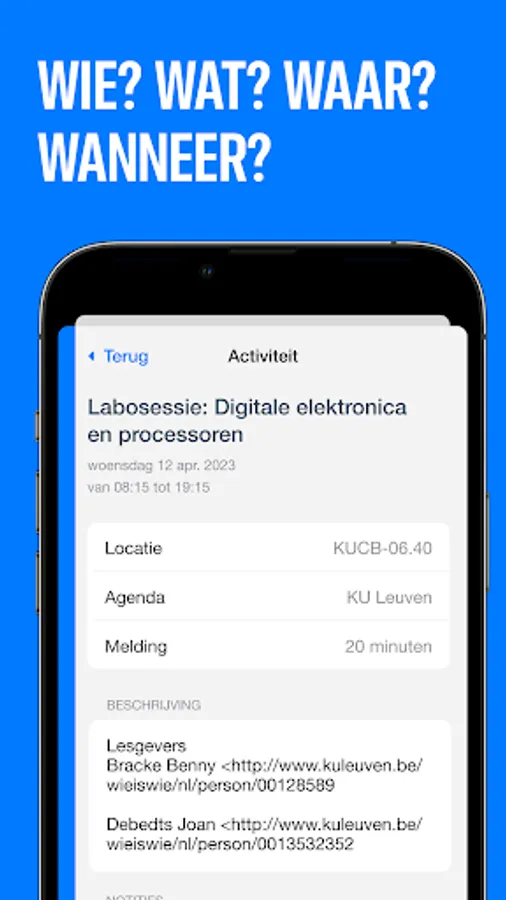 Timetable app for KU Leuven, U Ghent, VUB, Thomas More, Hogent, Vives, UCLL, Artevelde, Odyssee, Howest, Karel De Grote, LUCA, Erasmus.