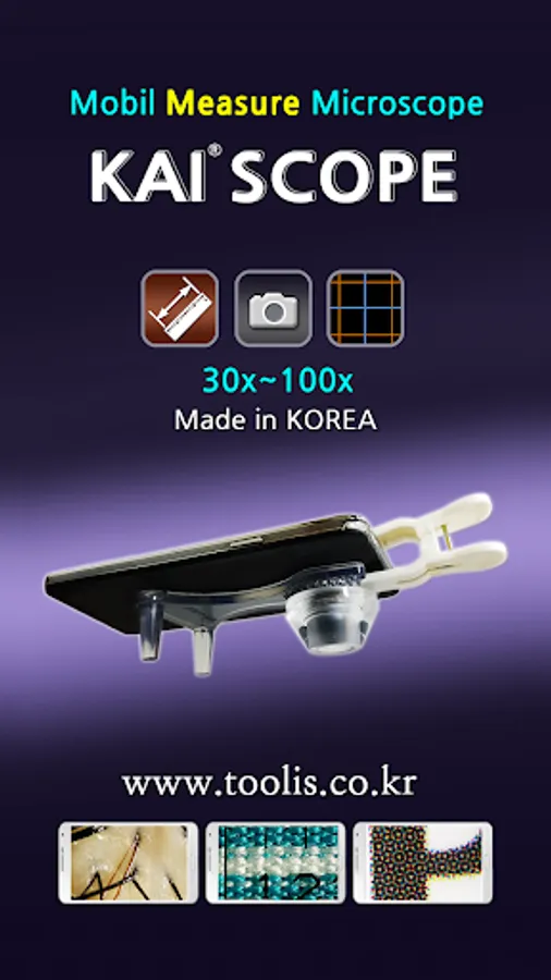 - 카이스코프를 부착하면 20배 ~ 100배 배율의 현미경으로 동작합니다.