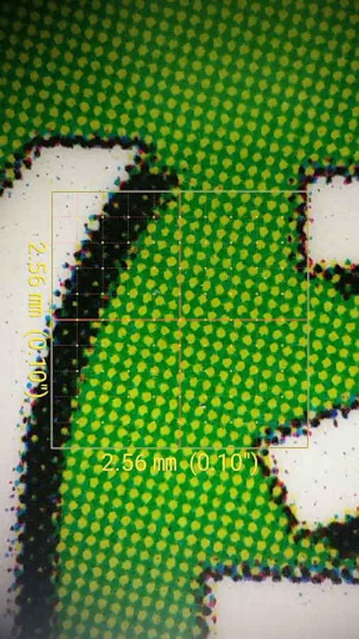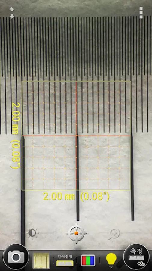 4) 측정 화면에서 측정하고자 하는 사물 이미지의 크기 및 위치를 조정하여 측정 격자에 정확이 맞도록 합니다.