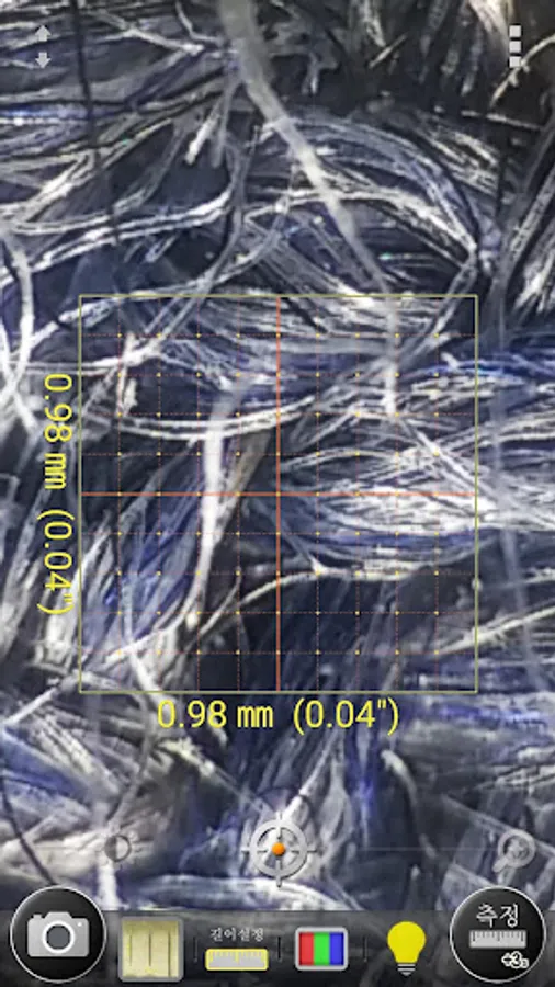 4) 측정 화면에서 측정하고자 하는 실 10올 이미지의 크기 및 위치를 조정하여 측정 격자에 정확이 맞도록 합니다.