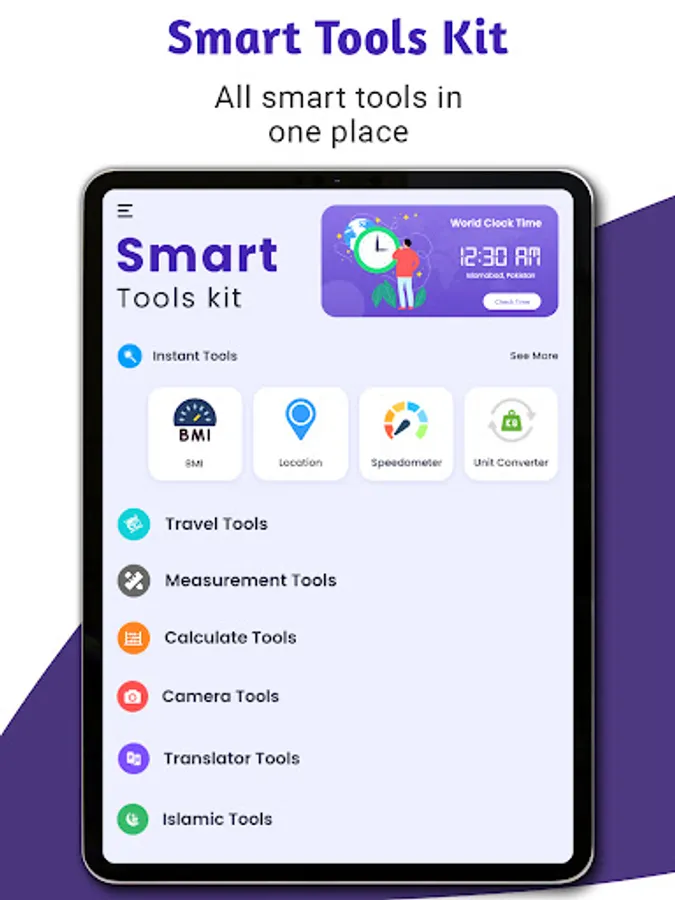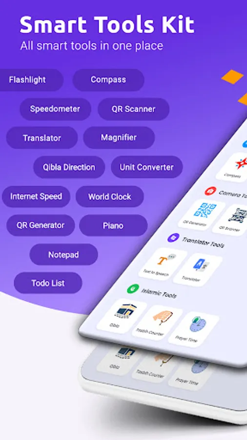 This all tools app features a variety of smart tools for android that are helpful in everyday life, such as unit converters, wifi speed tester, QR Code Reader, BMI Calculator, QR Code Scanner, Language Translator, Calculator, and many more in this smart toolkit