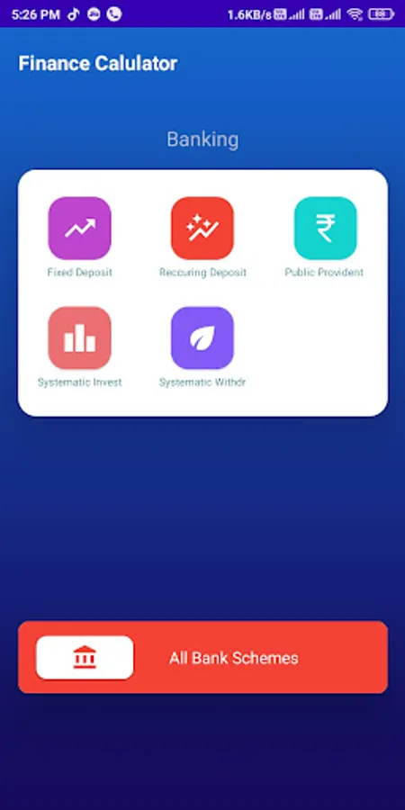 It has FD calculator ( Fix deposit) and PPF (public provident fund) calculator type simple interest related investment calculator and SIP calculator.