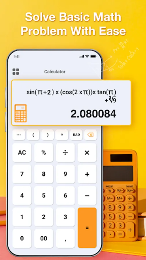 With our Calculator app, you can calculate the sine, cosine, tan and cotan of an angle. This app also helps you quickly calculate the circumference and area of a circle. Thus, you no longer have to do math manually.