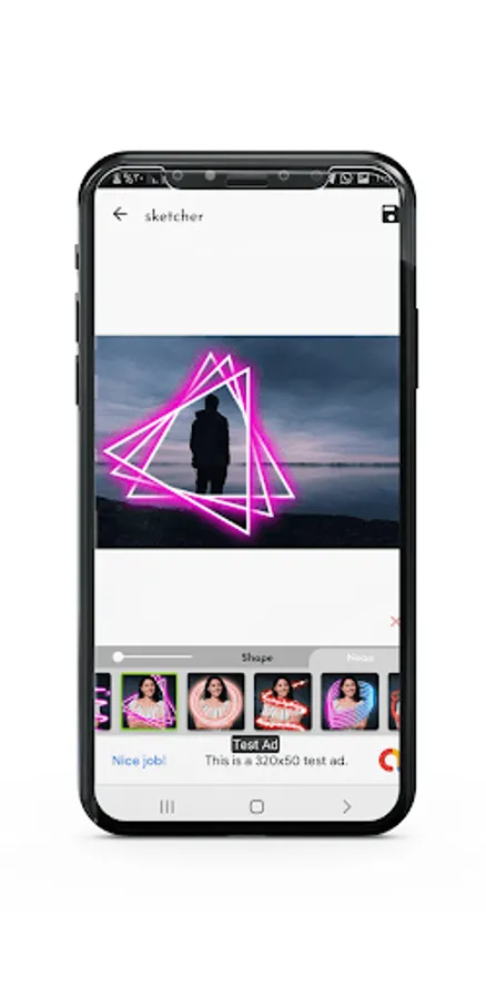 The sketcher app has a lot of unique options that can be used to add touches to your photos including neon effect and wing effect and there are plenty of other options inside sketcher