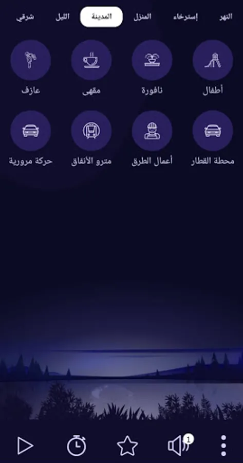- Nature sounds (bird, cave, fire, wind, snow, river, etc.)