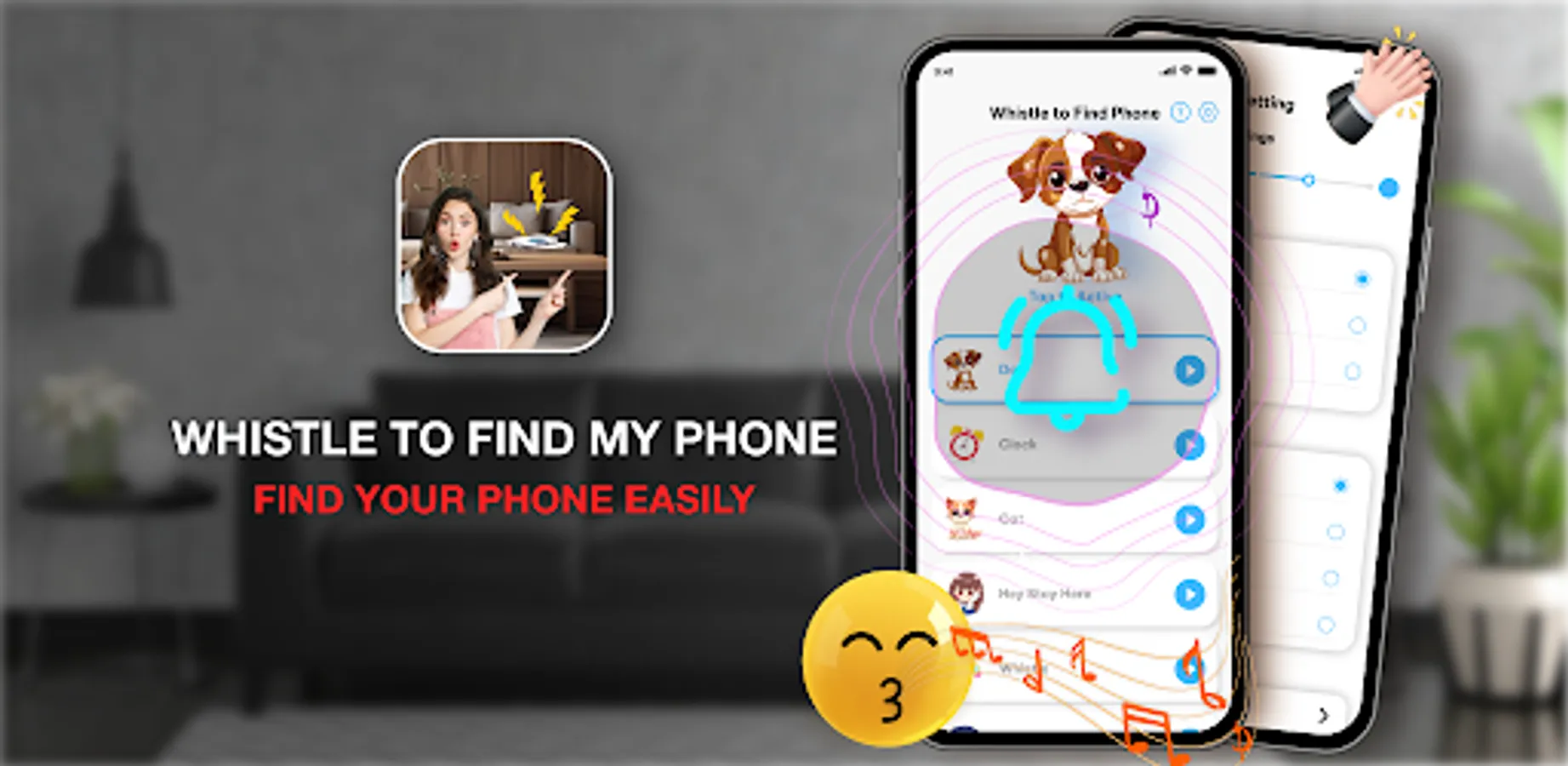 - Next time your phone is missing, you can find your phone by whistle. The app will detect the whistler and your phone will start ringing.