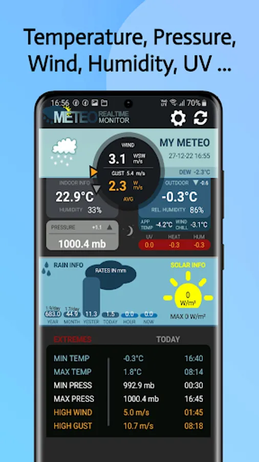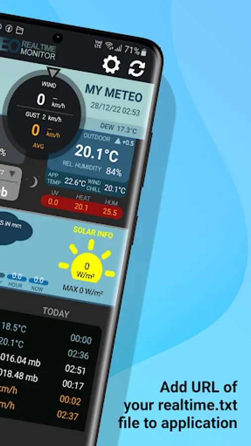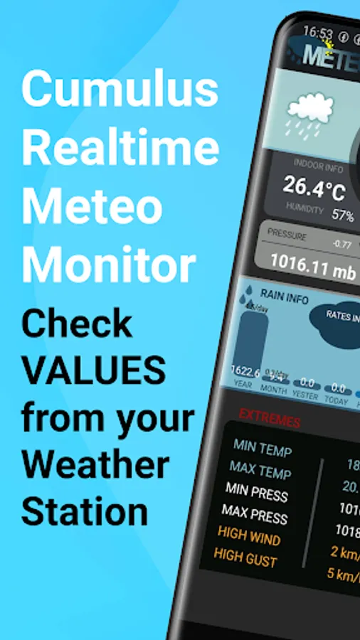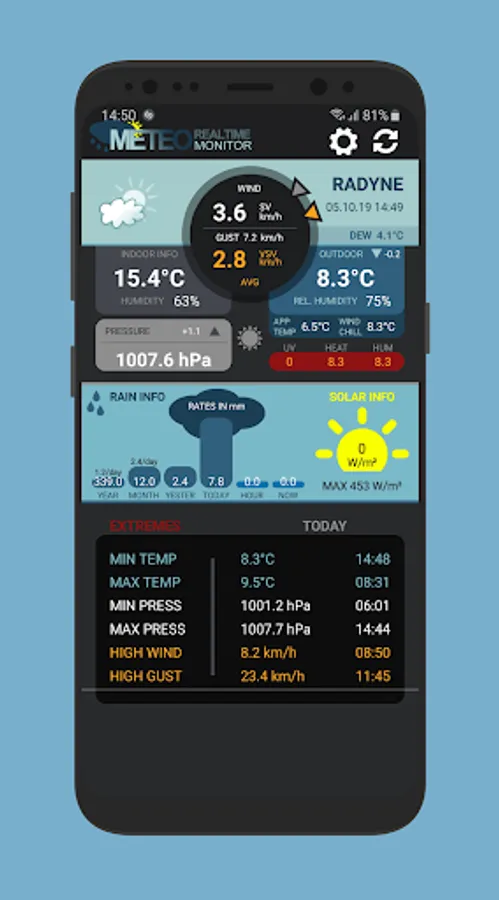 Unofficial meteo application for checking your realtime.txt data from your Personal Weather Station (PWS) with Cumulus data export to your ftp server, to see current weather values from your meteo home station.