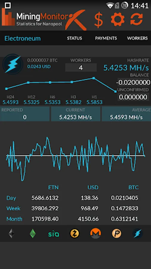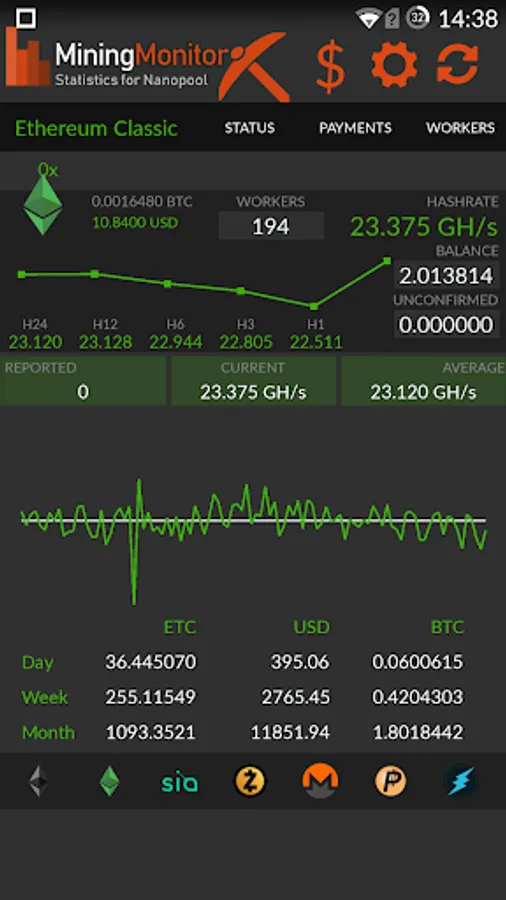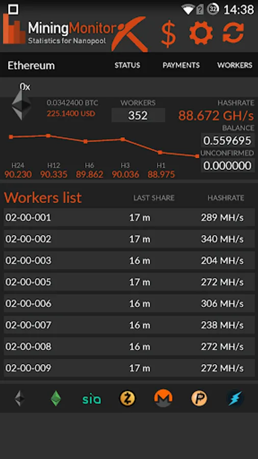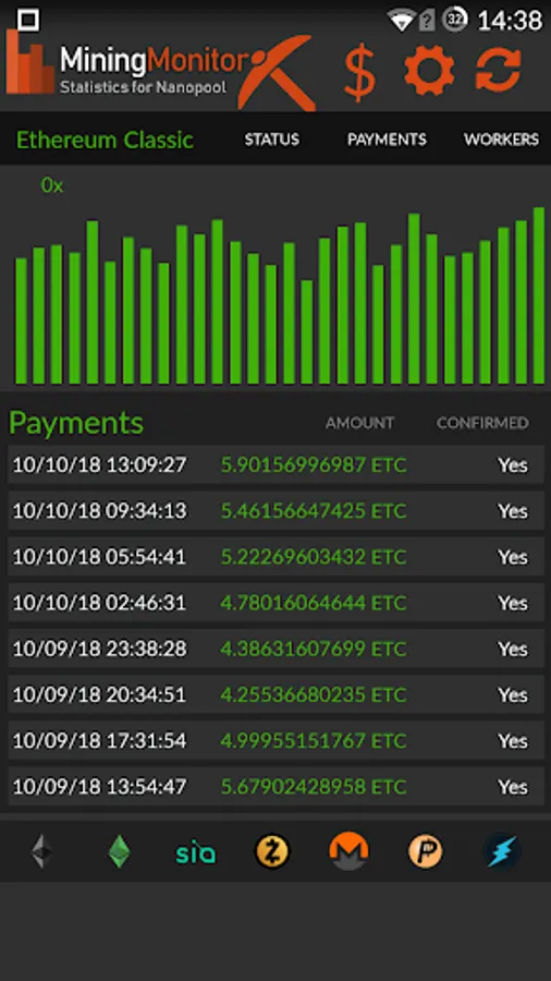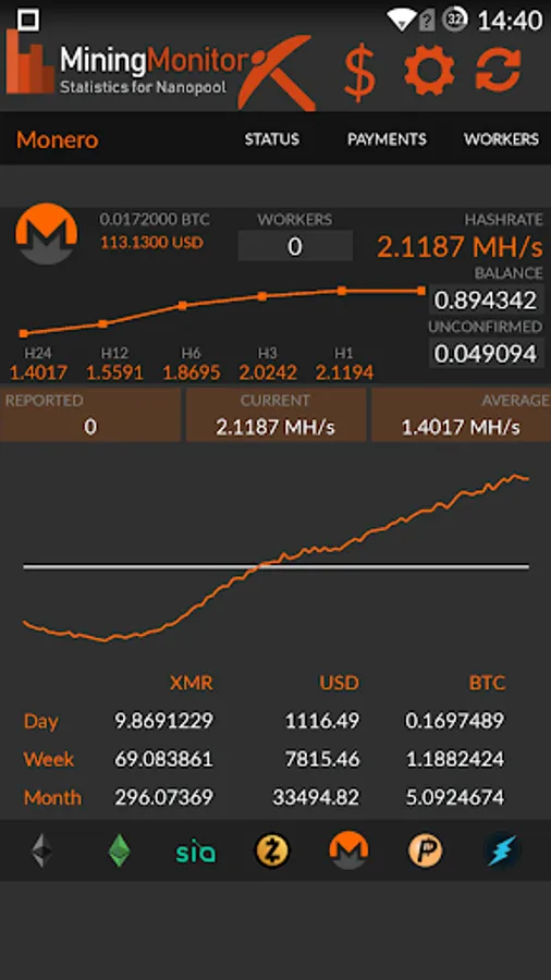 Unofficial monitoring application for checking your mining and statistics on Nanopool for ETH, ETC, SC, ZEC, XMR, PASC, ETN, RVN, GRIN.