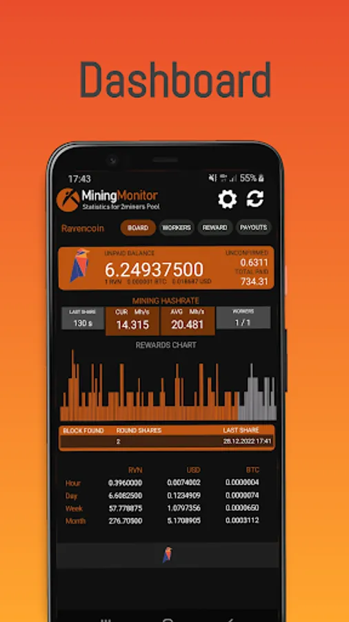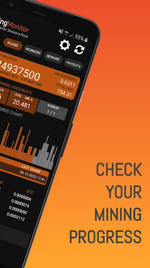 This is unofficial monitoring application for checking your mining progress and statistics information on 2miners Pools for all supported coins, see list below.