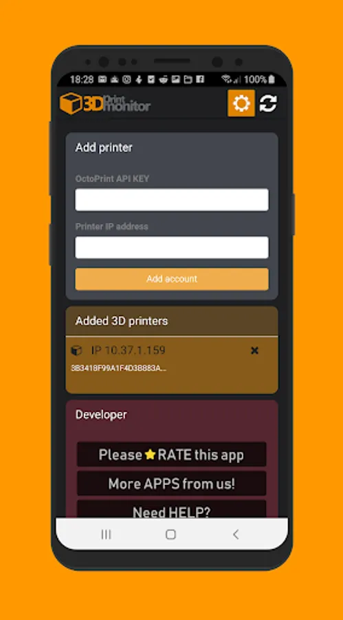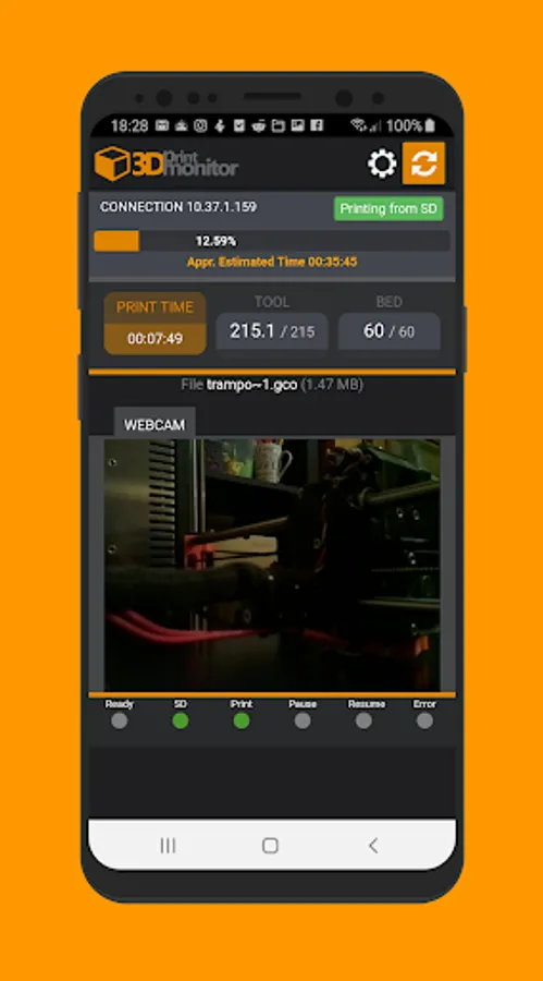 This simple app can monitoring you 3D printing via OctoPrint and shows basic information, including webcam view. You can check your printing progress and potentially errors in printing.