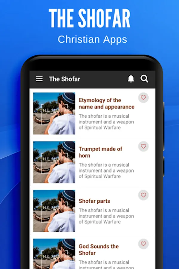 The shofar - Biblical app, is designed so that you know the power of the shofar in your Christian life, you will also learn to use it in your daily life and as a prophetic act, how to make yourself the holy spirit and how to know it. It also contains books that will help you in the process of your liberation. Here you will learn to find your freedom in Christ and use spiritual weapons.