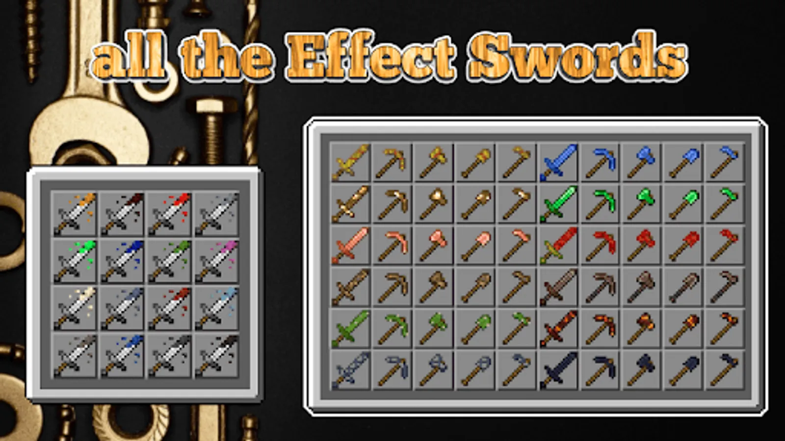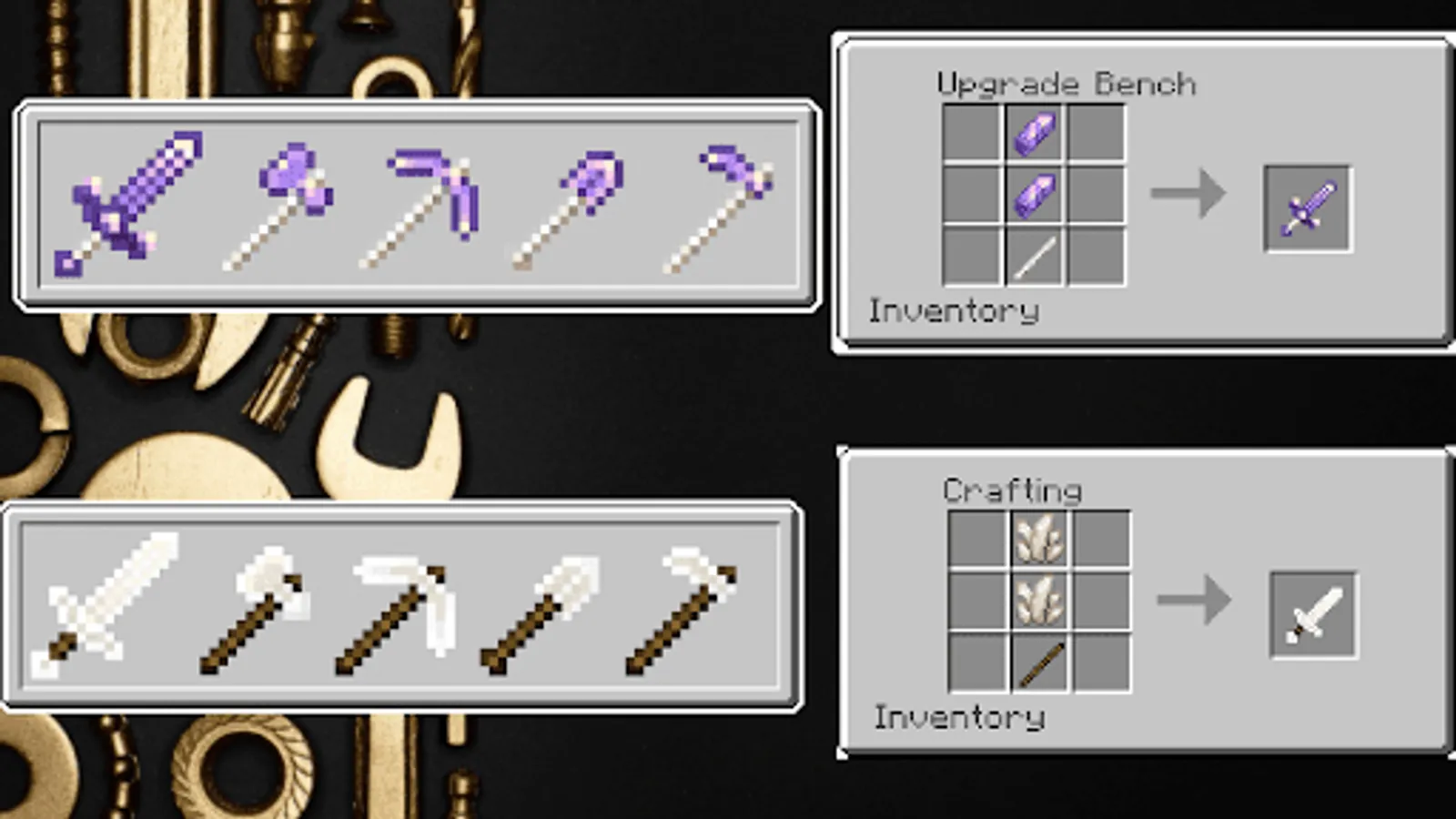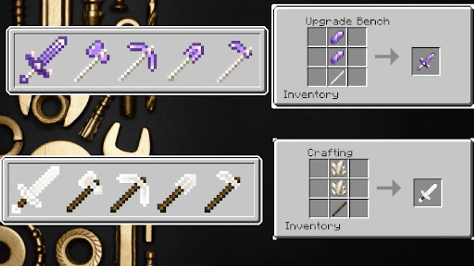 Hello, dear friend! In Tools mod for minecraft Tools you will find mods with different tools and crafting options. I can’t list all the possibilities, and you will have to reveal some of them yourself. In one of the mods you will find over 300 tools. All this needs to be crafted, you will have many variations that you have to open. There will also be a mod with texture updates and many other additions.
