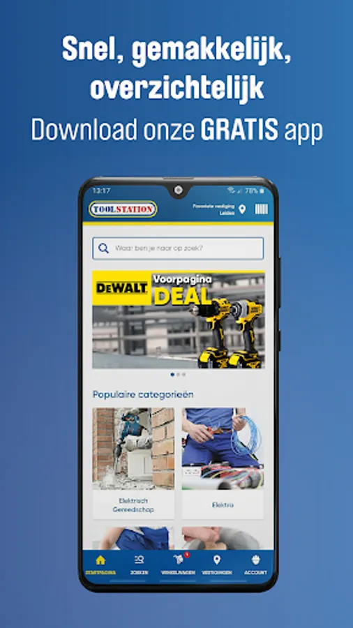Do you want to quickly move on to your next job, but are you still missing the right products? Finding the right products for your job can be faster and easier! Download the free Toolstation App and discover the convenience and speed. View stock at a glance In the branch and online. You will find what you are looking for in no time so that you can quickly get on with your job.