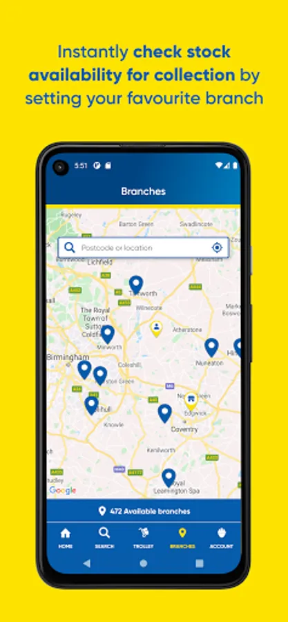 • Simply select a map pin to access branch address, trading times and contact details