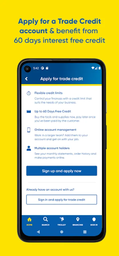• Learn about our fabulous Trade Credit account and apply from the app