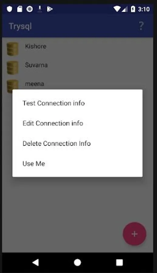 Try Sql works as a Tool to connect the database within the Smartphone as: