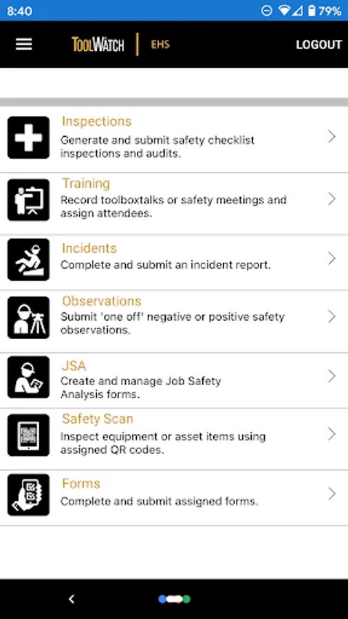 Toolwatch EHS is an environmental, health, and safety management app that helps construction organizations go beyond compliance to manage their safety procedures on the jobsite and improve their safety performance.