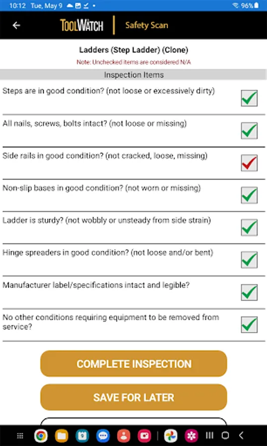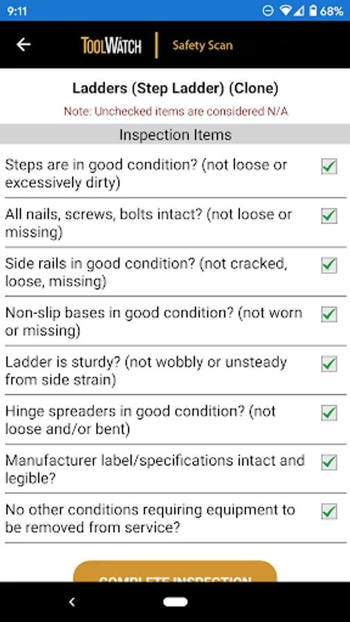 * Safety Scan - Inspect equipment or asset items using assigned QR codes