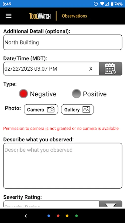 * Observations - Submit ‘one-off’ negative or positive safety observations
