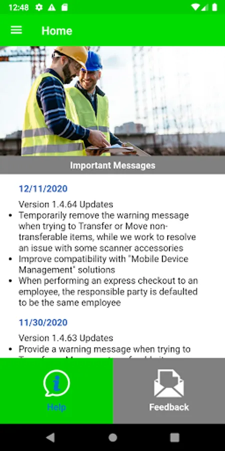 This application delivers mobile functionality to the field and warehouse teams. Field features include Search, Move, Verify, and Request. Warehouse features include Search, Transfer, Express Check In/Out, Count Inventory, Pick Tickets, and Create/Edit Items.