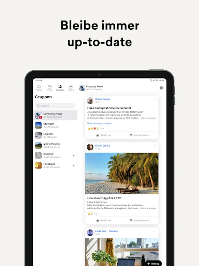 Stay informed about all internal developments and announcements that are relevant to you through a personalized newsfeed.