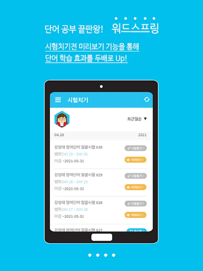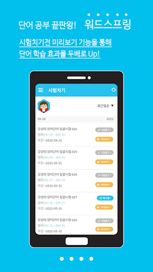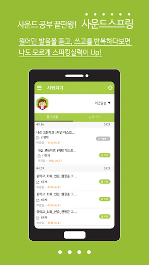 3. Spring your English skills through features such as effective memorization, retest until you pass, check incorrect answers, and automatic scoring ♥