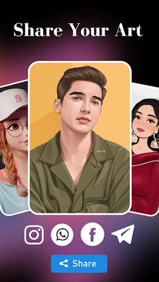 The application lets you share your cartoon photo with your friends and loved ones. It's a one-tap process.