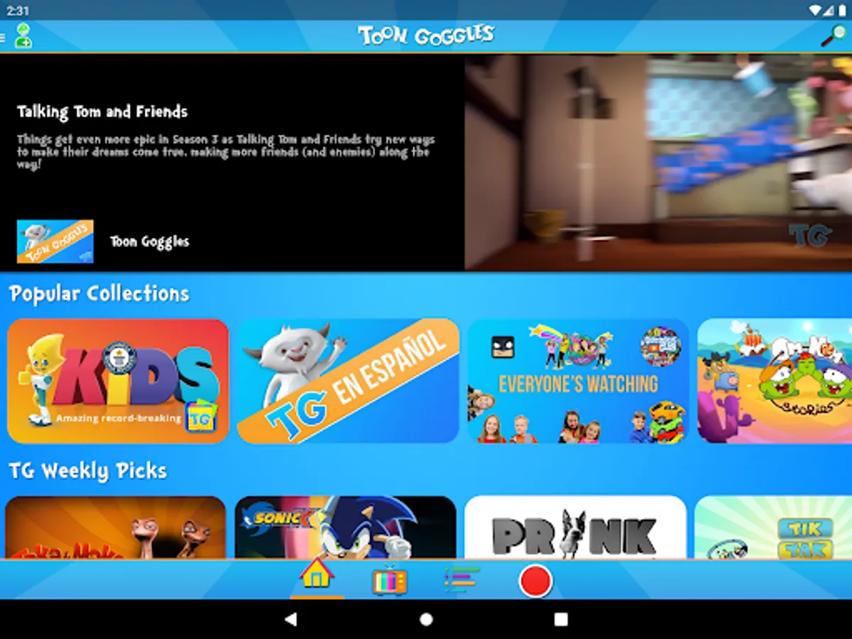 Toon Goggles has thousands of cartoons and live-action videos that are 100% Kid-Safe and parent friendly. We have content from your favorites including Talking Tom and Friends, Angry Birds, Om Nom, Gummy Bears, Roblox, Minecraft, and more. Toon Goggles brings a hybrid experience mixing in live channels that allow you to sit back or channel flip, or continue to explore our library of on-demand content. With all forms of content ranging from short form videos to feature films and everything in between, you can always find something to enjoy!