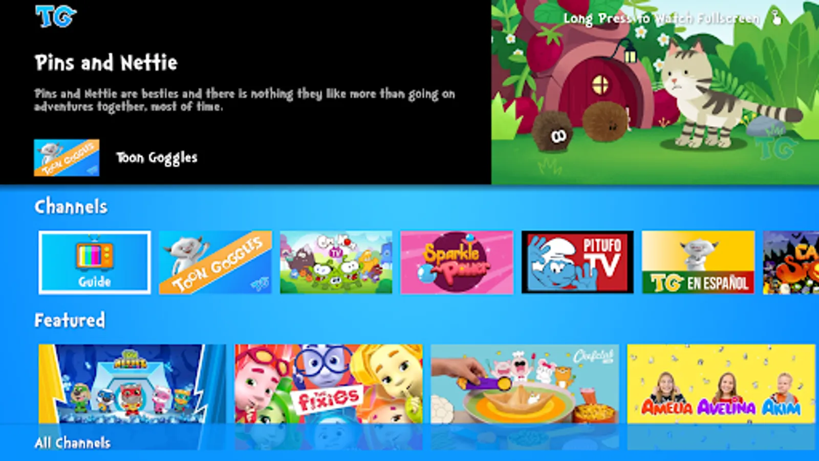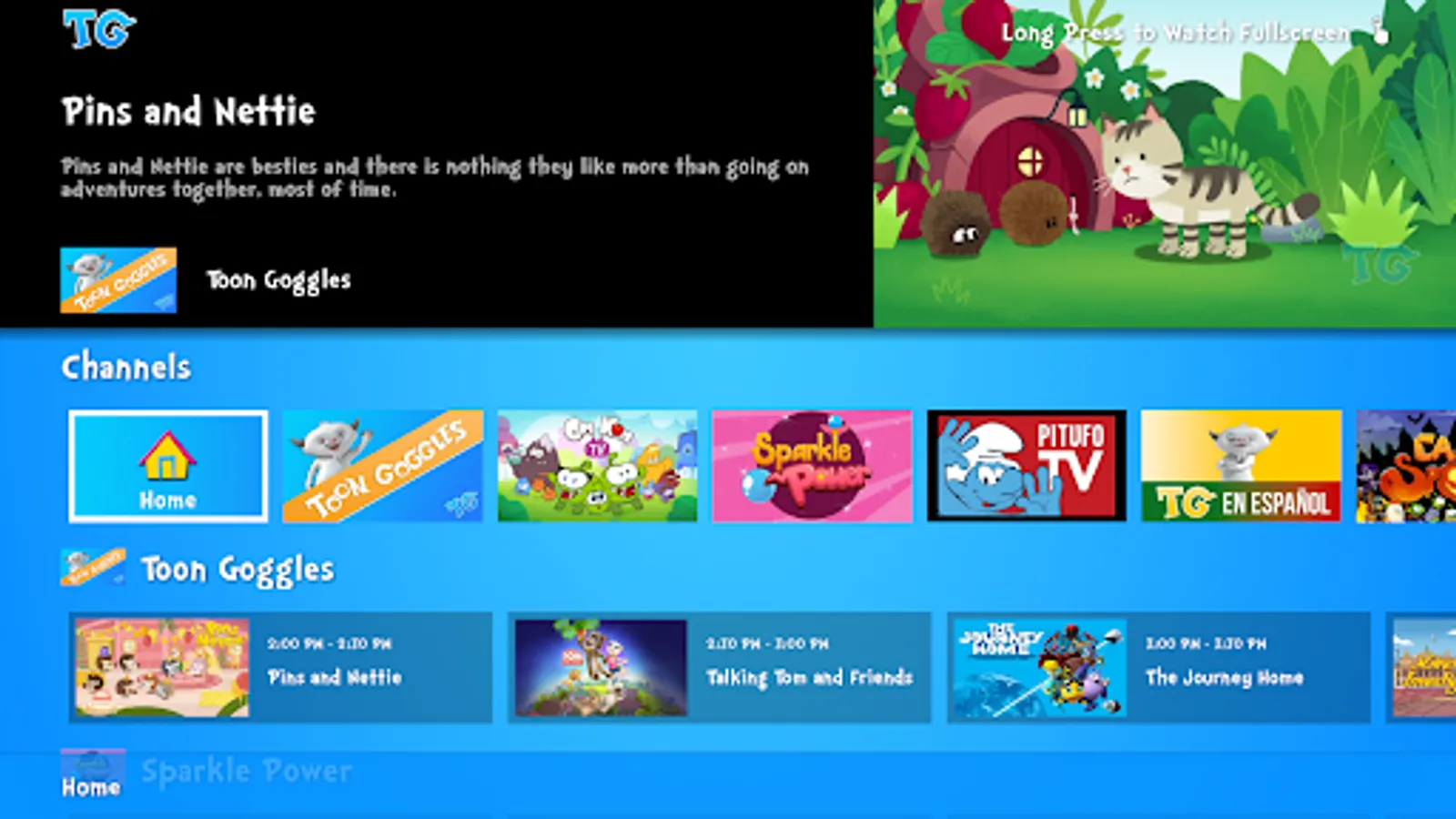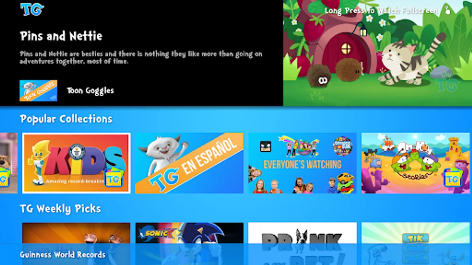 Toon Goggles has thousands of cartoons and live-action videos that are 100% Kid-Safe and parent-friendly. We have content from your favorites including Talking Tom and Friends, Angry Birds, Om Nom, Gummy Bears, Roblox, Minecraft, and more. Toon Goggles brings a hybrid experience mixing in live channels that allow you to sit back or channel flip, or continue to explore our library of on-demand content. With all forms of content ranging from short-form videos to feature films and everything in between, you can always find something to enjoy!