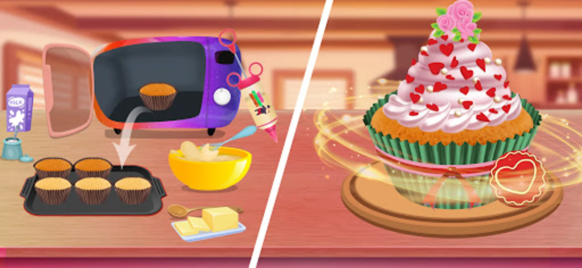 Learn cooking & baking in your cupcake mania by baking tasty cupcakes in a cream cupcake baker sweet food bakery game. Enjoy unicorn cupcake dessert bakery food games. Now your real challenge of a tasty dessert maker food game gives you the nonstop entertainment of sweet bakery cooking many types of sweet kitchen bakery food mania. Let’s bake perfect cupcakes and cookies with lots of fun. In this bakery food maker dessert game, a pastry chef can attract customers by using tons of decoration.