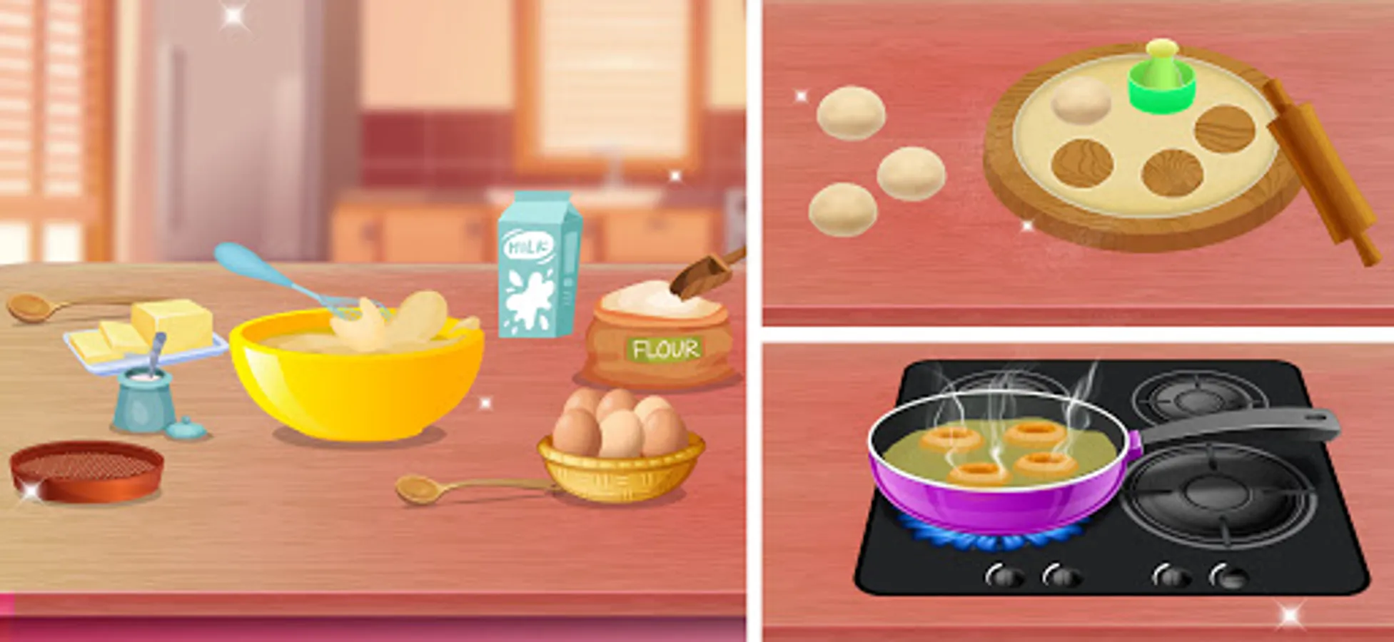 For the sweet dessert donut making, take donut ingredients to the kitchen and mix the ingredients for tasty donut making. Create the round shape for your tasty donut to enjoy. Take the donut to the frying pan and make donut, cupcakes at some warm temperature at your kitchen bakery to make it edible by the crazy donut maker. And at the end decorate your donut with millions of sweets and delicious toppings to fulfill sweet kitchen chef mania as the best dessert cook of the town.