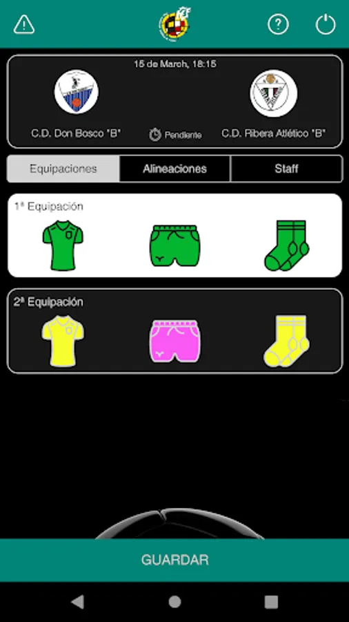 RFEF Delegates allows you to select the kit you want to play your next game with. In addition you can choose the alignment of the game and streamline the preambles so that the ball starts rolling as soon as possible.