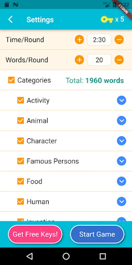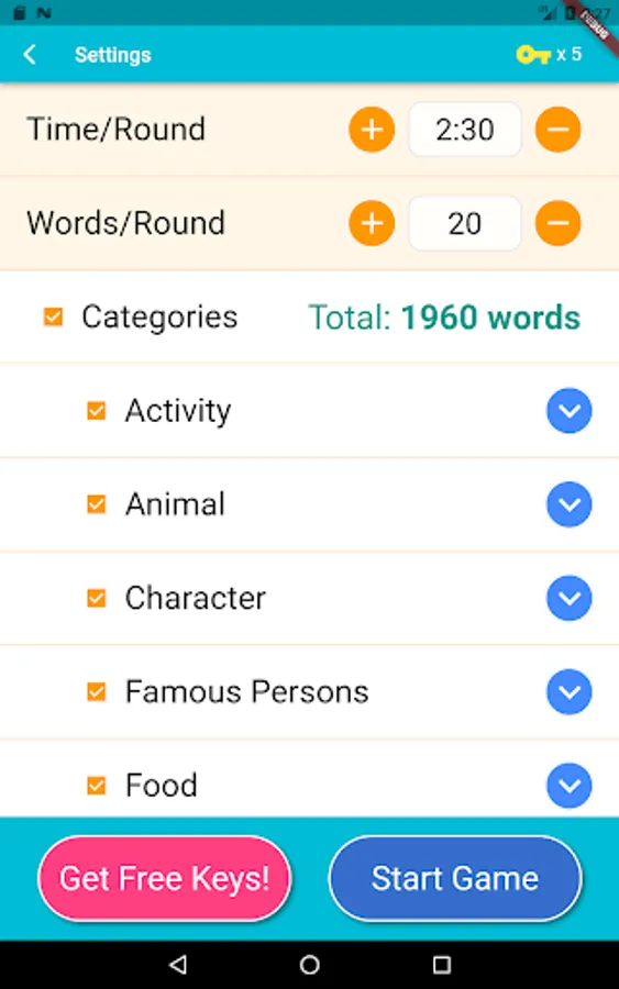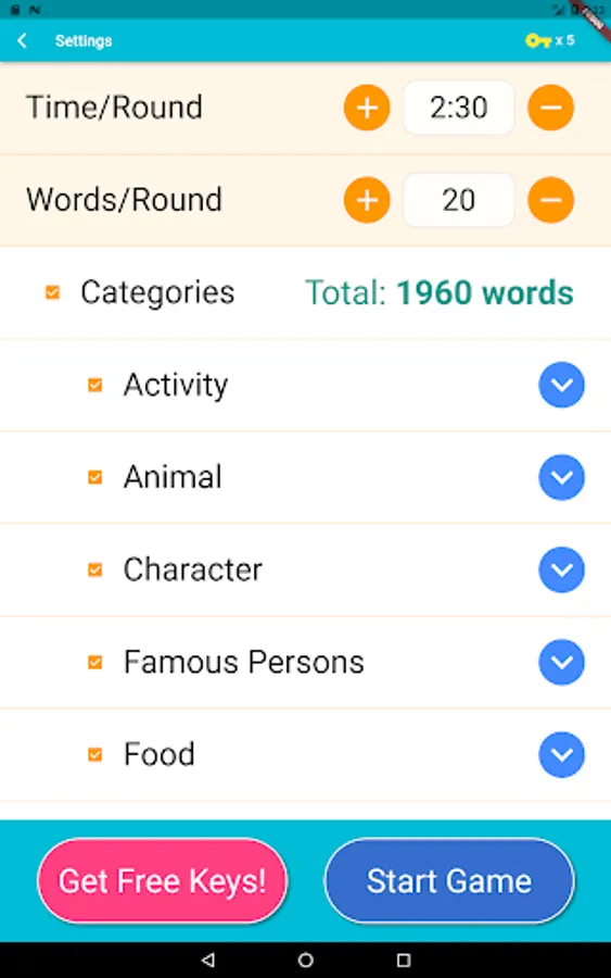 In this game, there are more than 25 categories of Words such as Celebrity, Movie Character, Occupation, Sport, Food etc.