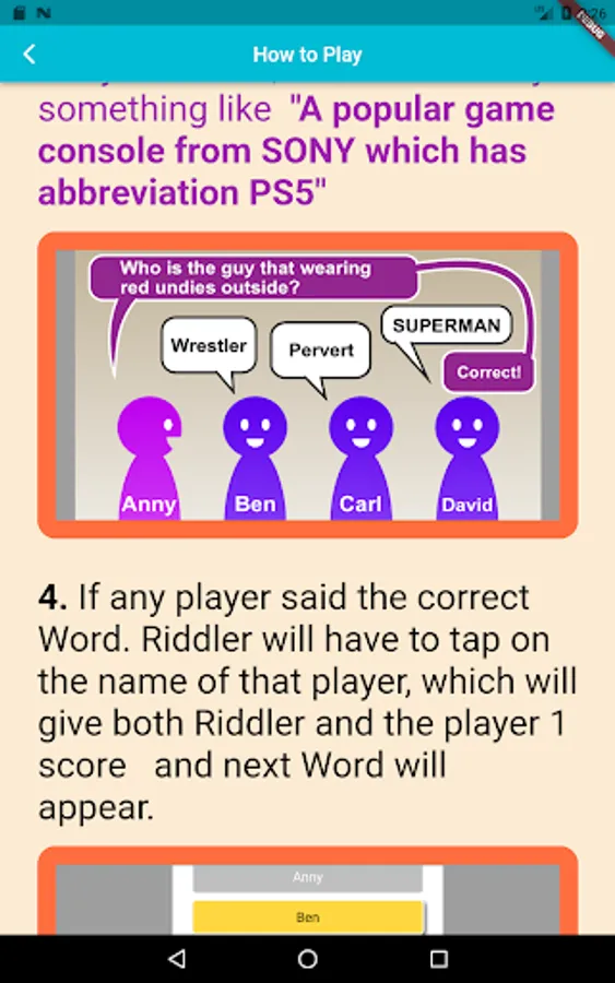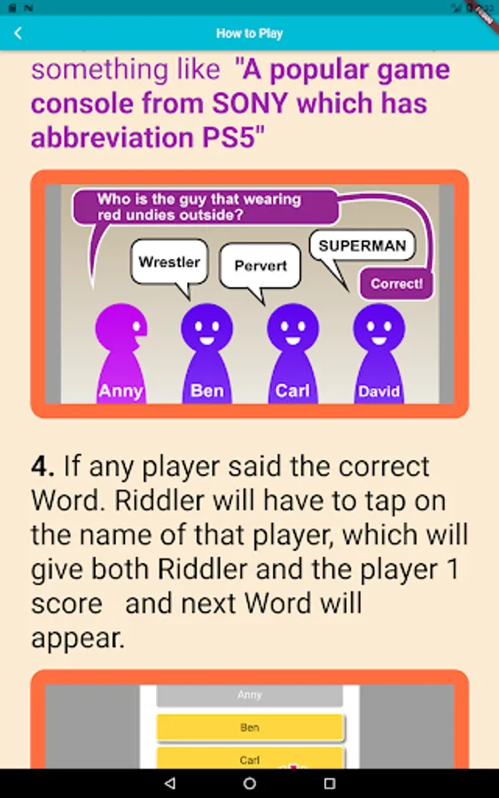 4. If any player said the correct Word. Riddler will have to tap on the name of that player, which will give both Riddler and the player 1 score