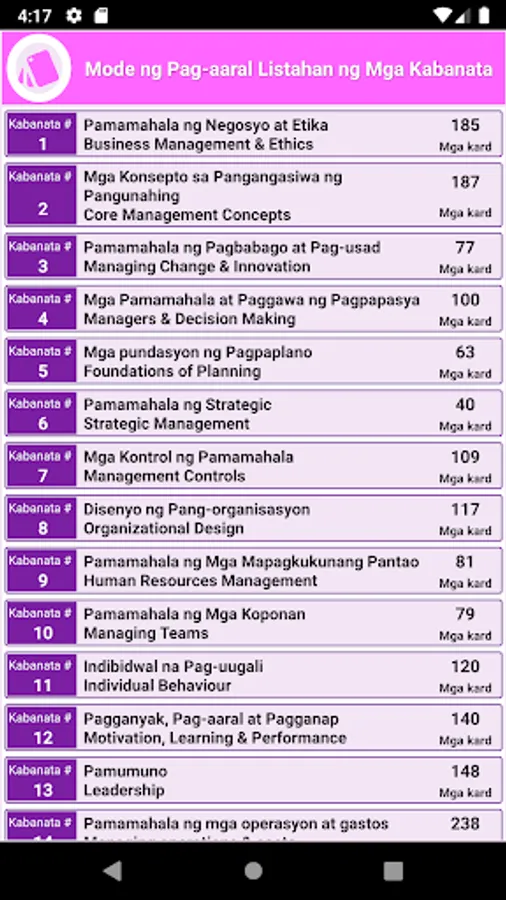 This is the only full-featured business Android app covering 22 businesses and leader topics that includes approximately 2,500 study notes, concepts, and test questions. It has become the best application for MBA preparation.