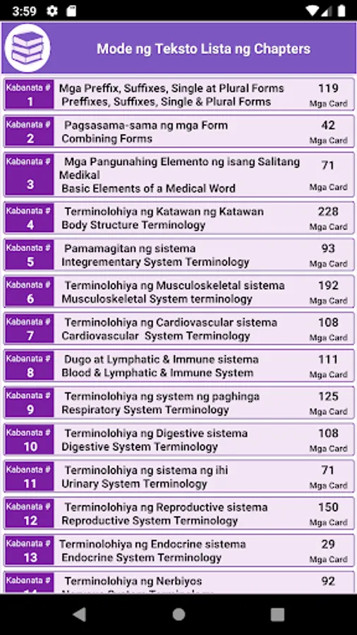 The application provides you with definitions of medical terms in Filipino and English for over 3000 words.