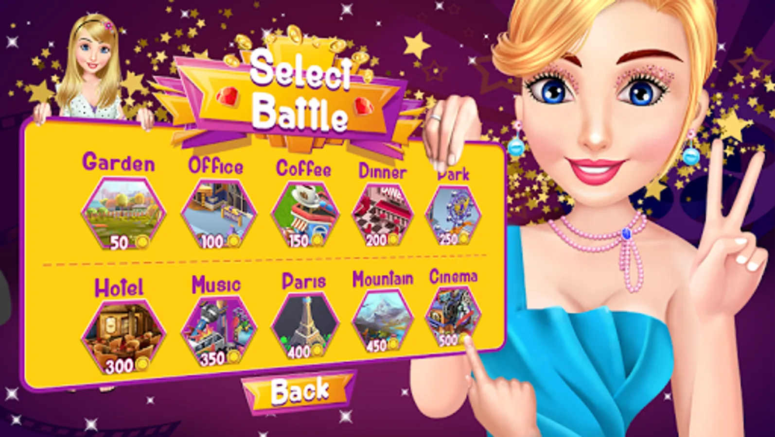 This is an ultimate fashion dress-up competition to become a fashion star. Put together the cutest outfit that goes with the occasion of the contest : Office , Cafe , Party, Cinema , Hip Hop , Wedding , Dating , Park.