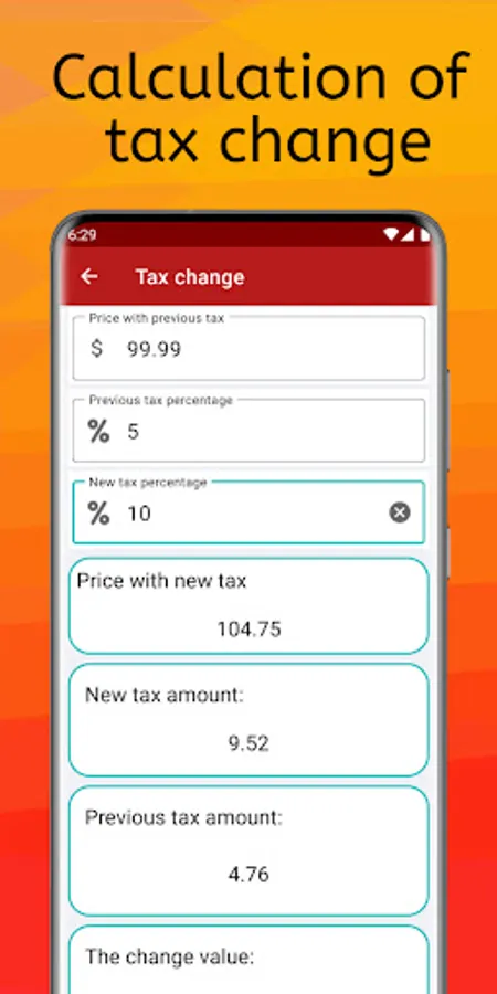 ✔️ Tax Change. This is a very handy computation to calculate the new total price when there’s a change in the tax rate. Enter the Price with Previous Rate, Previous Tax Rate, and the New Rate. Use this sale price calculator feature to manage your new price tag when a tax change is introduced.