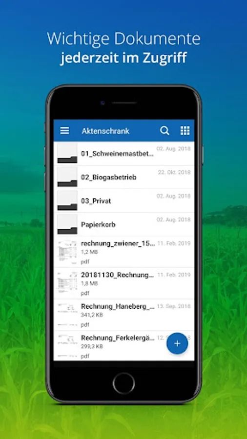 With the digital file cabinet from top farmplan, you can easily scan documents with your mobile phone and store them online in pre-made or self-created folders. Tagging allows you to tag documents with your own tags such as "material flow balance", "fertilizer determination" or "vet bills" and find all relevant documents with just a few clicks.