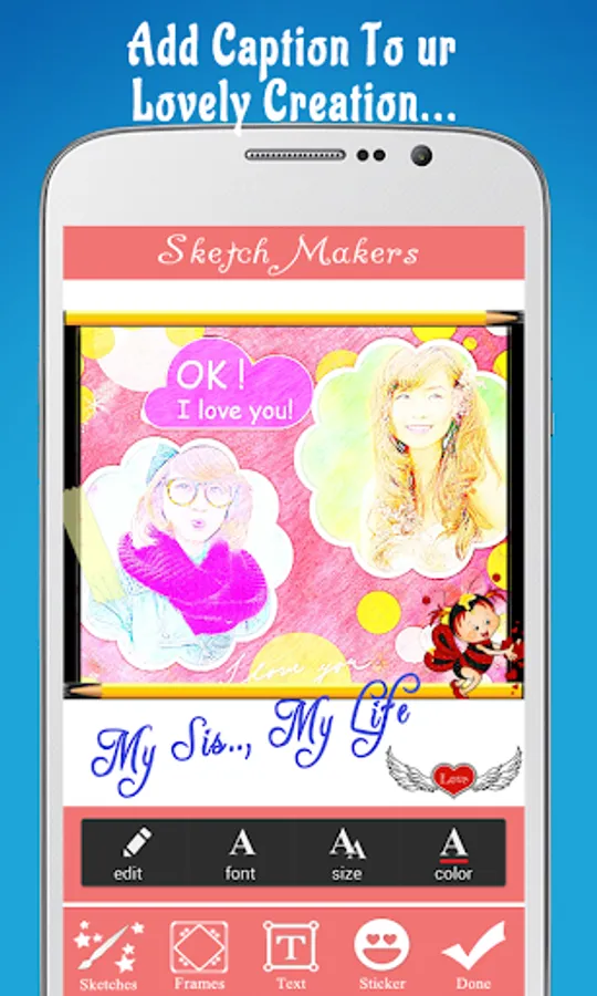 You can also write caption on the images and drag the text on the pictures using the gesture functionality provided in the app, with the option to change the color font style and font size. make instaCaption and put them on your Sketches.