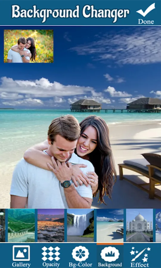 -- Select the Background for the main Photo from the Gallery or from Inbuilt Background Images.