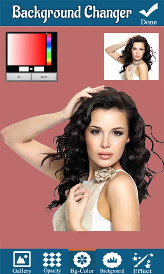 -- Opacity, Brightness, and contrast tools to adjust and suit your photo with new Background Image.