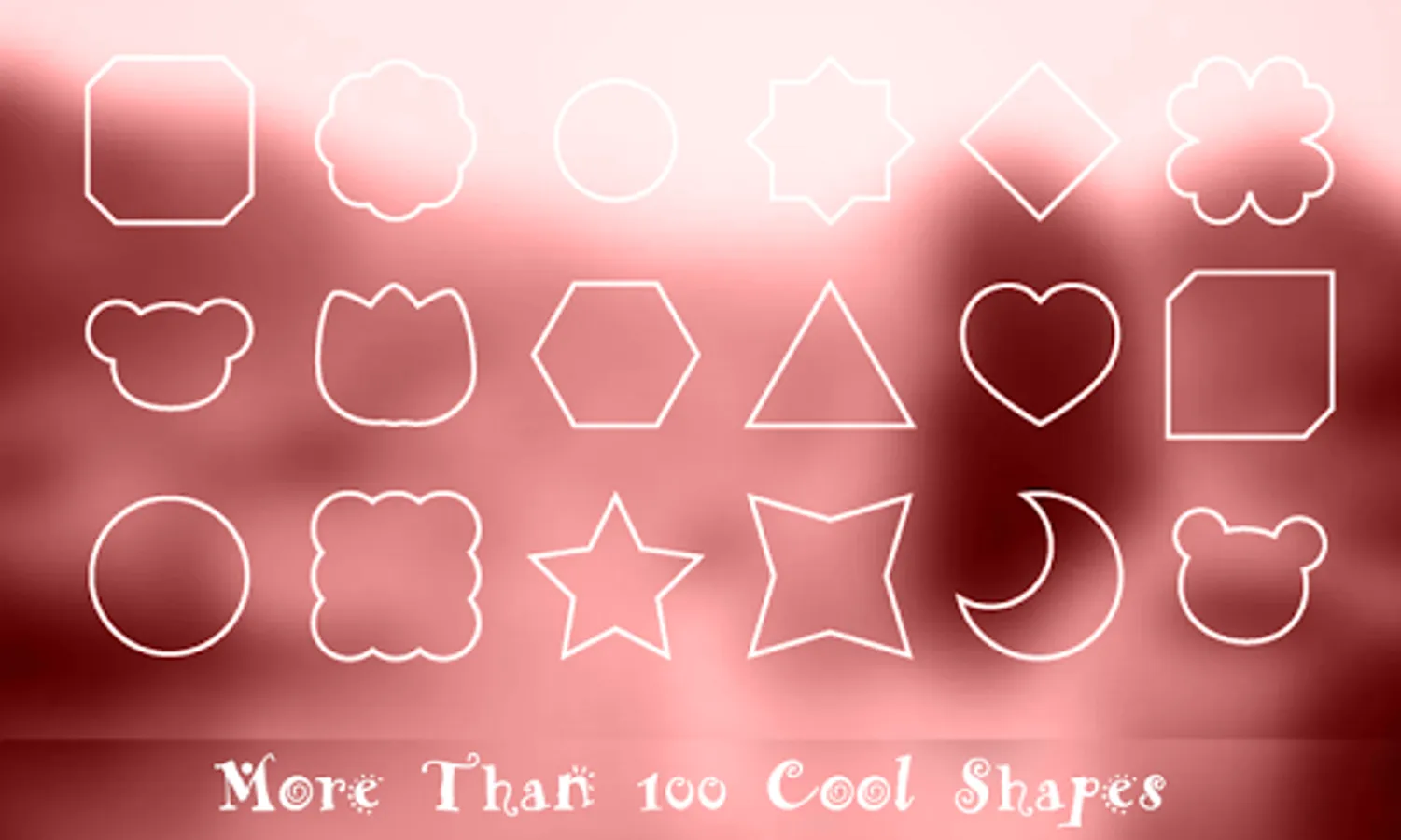 We provide over 100 free shapes and Add all sorts of cool and interesting new shapes to your photos, edit the ordinary into the extra ordinary. Quick and easy to use.